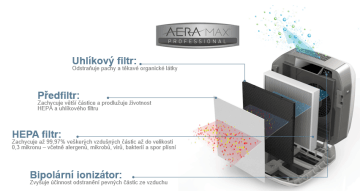 - Čističky vzduchu AeraMax PRO jsou vybaveny technologií EnviroSmart™, která pomocí inteligentních senzorů (hluku, pohybu a plynů) automaticky nastavuje optimální výkon a hospodárnost čističky.