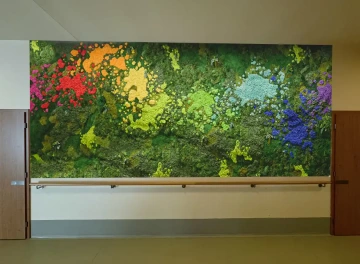 Tento nádherný projekt měl jediný úkol – zakrýt nevzhlednou stěnu a přitom vnést do prostoru pozitivní energii. Volba padla na stabilizované rostliny v barvách duhy, které vytvořily originální a živý prvek interiéru. Práce na projektu byla radost a výsledek je skutečně dechberoucí.