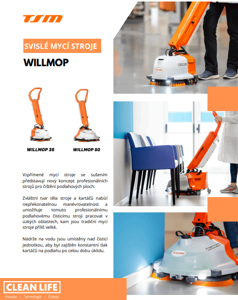 Jedná se o působivé zařízení, které díky své extrémní manévrovatelnosti obratně kopíruje pohyby obsluhy a zároveň poskytuje výkon srovnatelný s většími stroji. WILLMOP 35 je navržen tak, aby byla práce hotova bleskově! Jeho jednoduchost a ergonomický design, v kombinaci s pozoruhodným výkonem v oblasti mytí a sušení, zpříjemní pracovní úkoly a nevyhnutelně usnadní váš den.